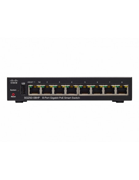 Descrição do produto: Cisco 250 Series SG250-08HP - interruptor - 8 portas - inteligente