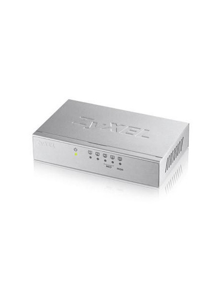 Switch Gigabit Ethernet de 5 portas da Zyxel, com carcaça metálica, ideal para redes domésticas e pequenas empresas. Oferece conectividade rápida e confiável para até 5 dispositivos.