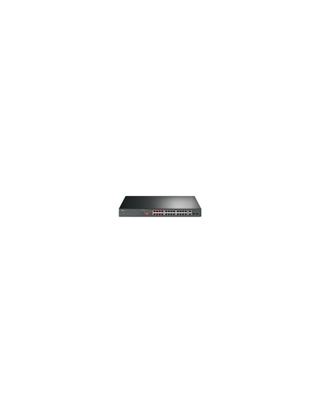 TP-LINK 26-PORT 10/100MBPS POE+ SWITCH, 24 10/100MBPS POE+ PORTS, 2 GIGABIT RJ45 PORTS, 2 COMBO SFP SLOTS, 802.3AT/AF, 250W POE POWER, 1U 19-INCH RACK-MOUNTABLE STEEL CASE, EXTEND MODE FOR 250M POE TRANSMITTING, PRIORITY MODE FOR PORT1-8, ISOLATION MODE