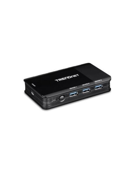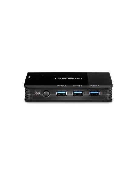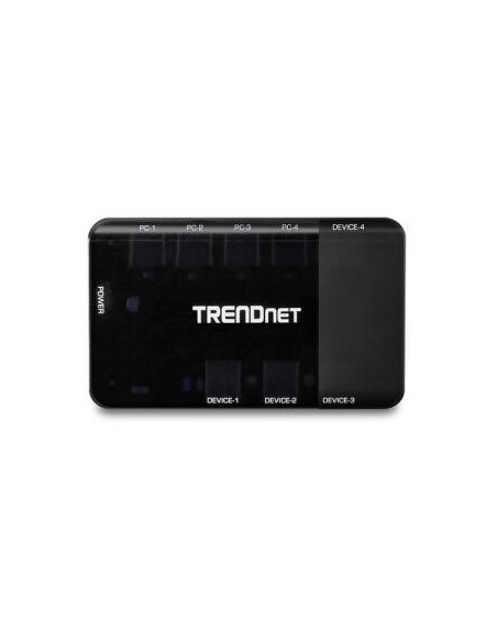 O switch USB 3.1 Trendnet TK-U404 permite partilhar 4 portas USB entre 4 computadores.  Oferece uma taxa de transferência máxima de 5000 Gbit/s e inclui um cabo MicroUSB.  Design compacto e certificado CE e FCC B.