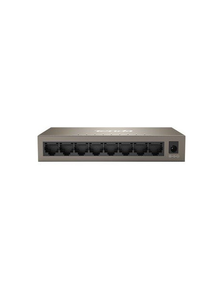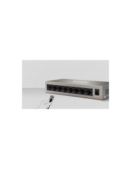 O switch Ethernet Tenda TEG1008M é uma solução de conectividade Gigabit Ethernet ideal para expandir a sua rede doméstica ou de escritório.  Com 8 portas Gigabit Ethernet 10/100/1000Base-T, ele proporciona velocidades de transferência de dados ultrarrápidas, permitindo uma experiência online fluida e eficiente, tanto para streaming de vídeo como para transferências de ficheiros de grande dimensão.  Este switch é projetado para ser extremamente amigável e fácil de instalar, sem exigir configurações complexas. Sua construção compacta e design moderno permitem que se integre discretamente a qualquer ambiente, adaptando-se a diferentes locais e necessidades.  A sua versatilidade estende-se também ao tipo de instalação, permitindo tanto a sua colocação em cima de uma mesa como a sua montagem na parede, para uma maior flexibilidade.  A Tenda TEG1008M é uma escolha inteligente para quem procura um switch Gigabit Ethernet fiável, fácil de usar e ecologicamente responsável. A sua compatibilidade com Par Trançado garante uma integração perfeita na sua rede existente.  Para mais informações sobre especificações técnicas, por favor consulte o site do fabricante: http://www.tendaus.com/