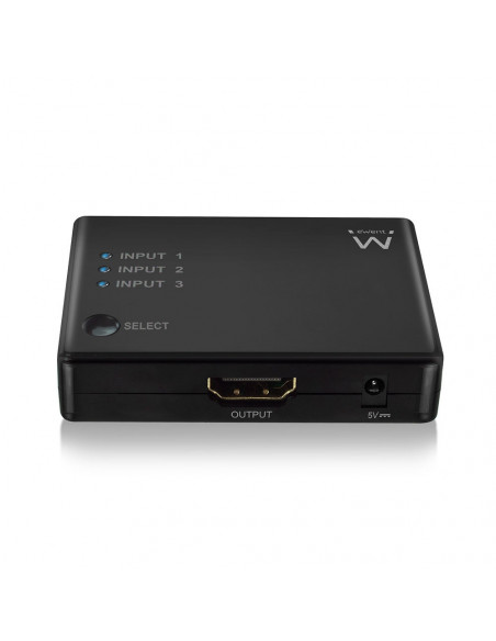 Comutador de vídeo HDMI EWENT EW3730, 4K (3840x2160 pixels), suporta 2160p. Permite ligar 3 dispositivos HDMI a uma única saída. Inclui controlo remoto.