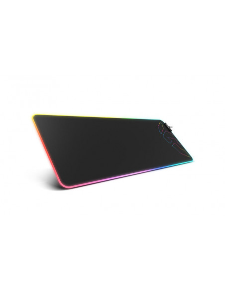 Krom Knout XL RGB. Comprimento: 900 mm, Largura: 350 mm. Cor da caixa: Preto, Coloração de superfície: Monótono, Material: Tecido, Borracha, Energia por USB, Cor da retroiluminação: Vermelho/Verde/Azul, Base antiderrapante, Tapete Gaming
