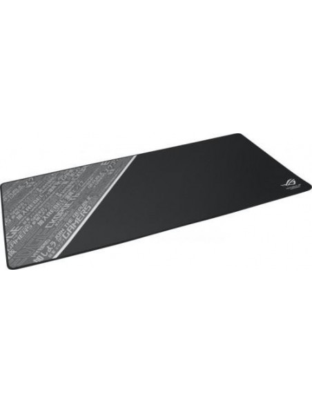 Tapete de rato para jogos ASUS ROG Sheath BLK LTD, com dimensões de 900 mm x 440 mm e espessura de 3 mm. Confeccionado em tecido e borracha, possui base antiderrapante e bordas reforçadas para maior durabilidade. Disponível nas cores preto, cinza e branco.