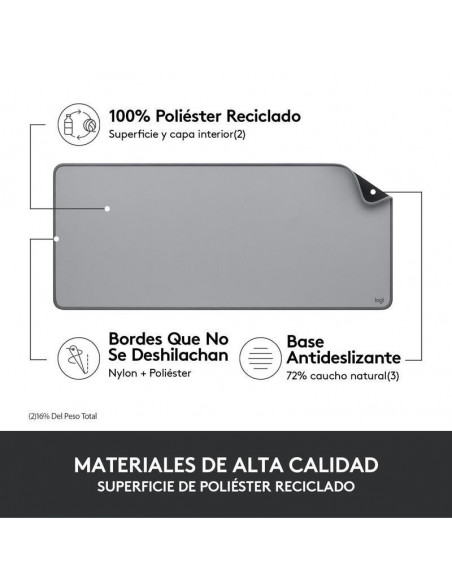 O Tapete de Rato Logitech Studio Series é uma solução elegante e funcional para o seu espaço de trabalho. Com um design moderno e elegante, em tons de cinzento médio, este tapete oferece uma superfície suave e resistente a salpicos, ideal para uso diário. A sua base antiderrapante garante estabilidade e a sua composição inclui poliéster reciclado. Ideal para uso com rato e teclado.