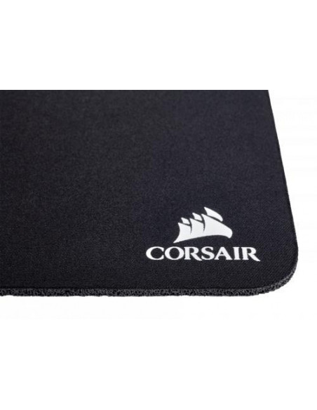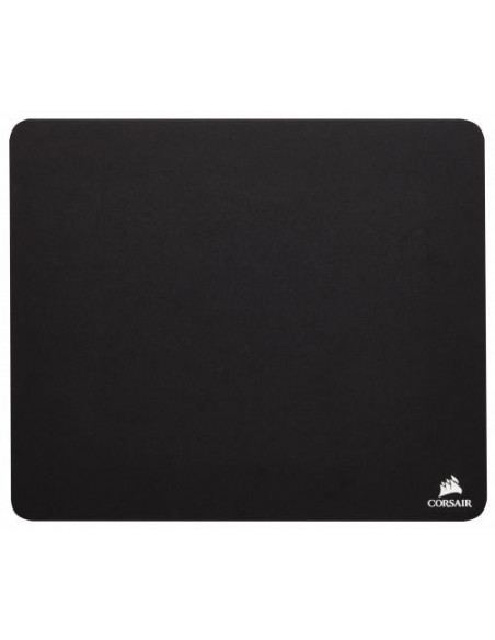 Tapete de rato Corsair MM100, de superfície lisa e base antiderrapante, ideal para jogos. Design simples e preto, com dimensões compactas, perfeito para diversos tipos de utilizadores.