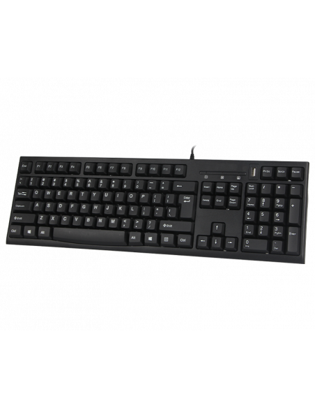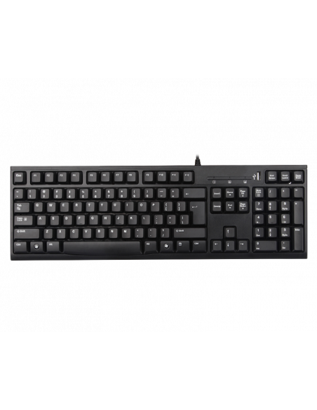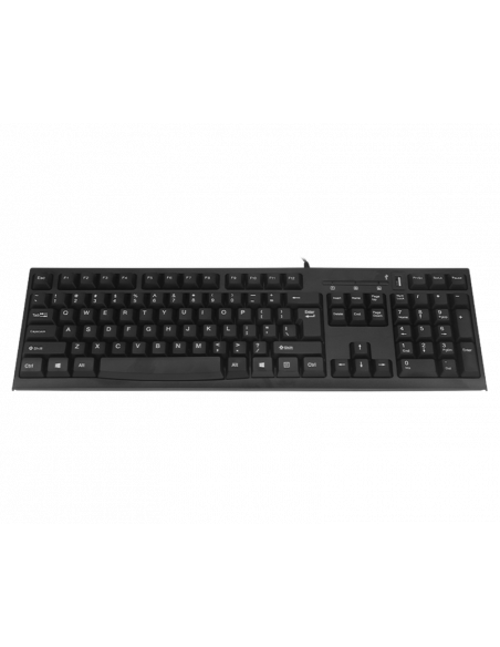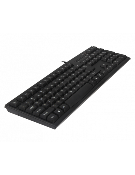 O teclado é fácil de usar, bastando ligá-lo ao computador através da ligação USB. A estrutura é resistente a riscos e fácil de limpar, o que facilita a manutenção e aumenta a sua durabilidade. As dimensões compactas e o peso de 591g tornam este teclado versátil e adequado para diversos ambientes.