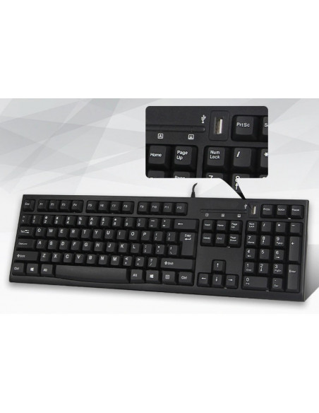 Uma das principais vantagens do Teclado INSYS MT8-K815 é a porta USB integrada, que permite ligar outros dispositivos diretamente ao teclado, como um rato, uma pen drive ou outros acessórios. Esta funcionalidade reduz a necessidade de alcançar a parte traseira do computador, facilitando o acesso a diferentes periféricos.