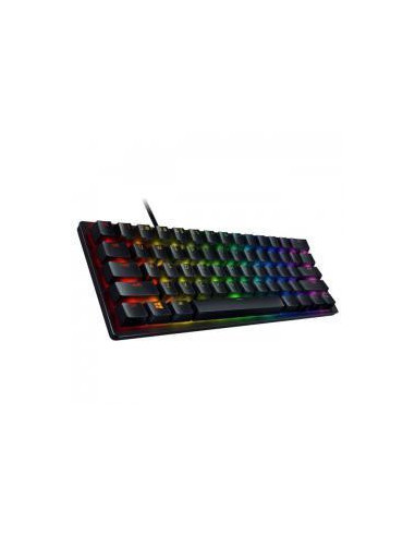 Teclado mecânico Razer Huntsman Mini com switches vermelhos, layout português e formato mini. Ideal para jogos, oferece uma resposta rápida e precisa. Possui retroiluminação RGB personalizável com 16,8 milhões de cores. Conectividade via USB Tipo C.