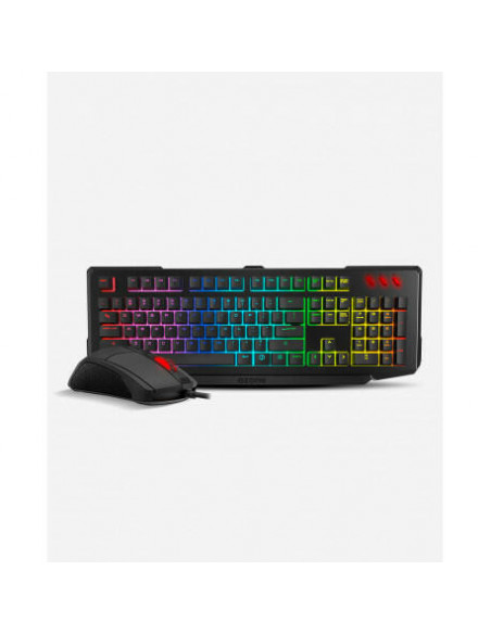Ozone OZDOUBLETAPPT. Forma do factor do teclado: Tamanho completo (100%). Estilo de teclado: Em frente/linha reta. Tecnologia de conetividade: Com fios, Interface de dispositivo: USB, Interruptor do teclado: Teclas semi-mecânicas, Layout do teclado: QWERTY, Número de teclas do teclado: 105. Tipo de retroiluminação: LED. Comprimento do cabo: 1,8 m. Uso recomendado: Jogos. Cor do produto: Preto. Rato incluído