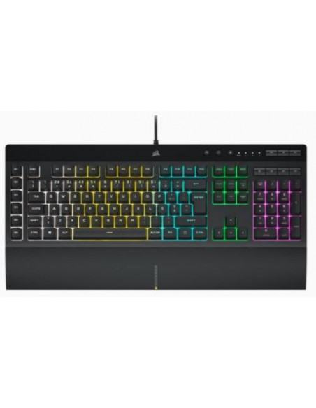 Teclado Corsair K55 PRO RGB PT, um teclado para jogos com iluminação RGB e layout português. Oferece uma experiência de digitação responsiva e imersiva. Ideal para jogadores que procuram um teclado com iluminação personalizável e funcionalidades adicionais para melhorar o seu desempenho nos jogos. Este modelo apresenta um design moderno e resistente, perfeito para uso prolongado.