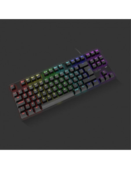 Teclado gaming mecânico TKL com iluminação RGB Rainbow e funções de atalho.