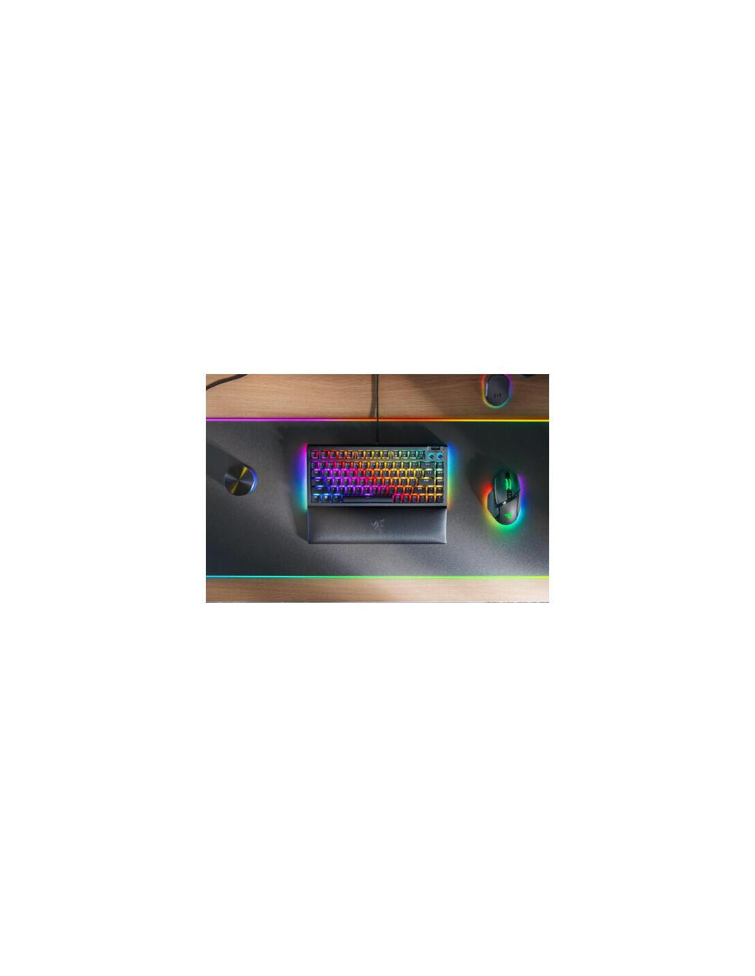 O teclado Razer Blackwidow V4 75% (layout EUA) é um teclado mecânico de alta performance, projetado para jogadores que procuram um equilíbrio entre desempenho e tamanho compacto. Com um design de 75%, este teclado elimina as teclas numéricas, liberando espaço na sua secretária sem sacrificar as funcionalidades essenciais.