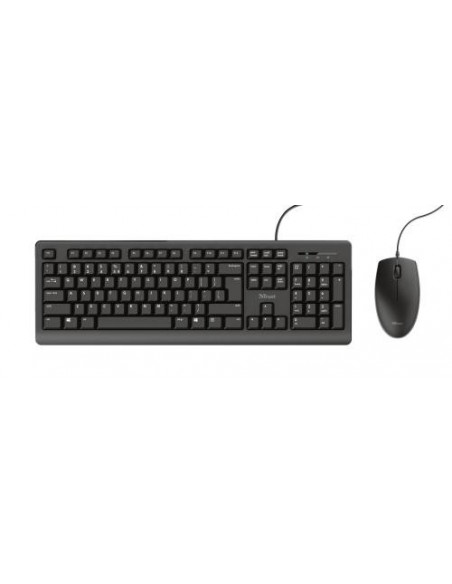O conjunto Trust Primo inclui um teclado e rato silenciosos, ideais para trabalho. O teclado é de tamanho completo com teclas de perfil baixo, resistentes a derramamentos de líquidos e com altura ajustável. O rato é ambidestro e confortável. Conexão USB simples e imediata. Ideal para quem procura um conjunto básico e funcional para o dia-a-dia.