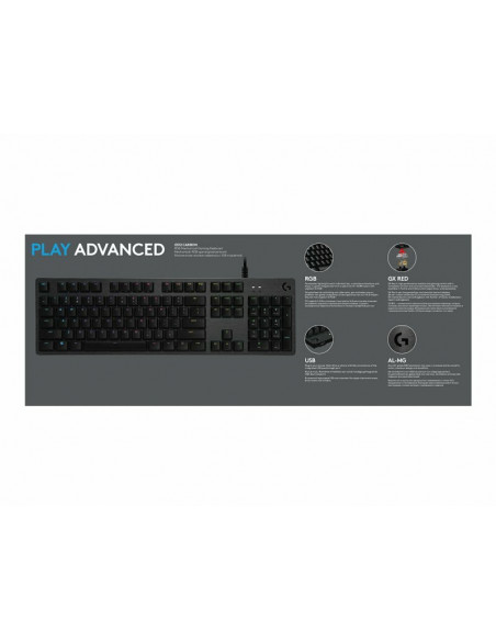 Logitech Gaming G512 - Teclado - luz traseira - USB - Padrão internacional americano - interruptor: GX Red Linear - carvão