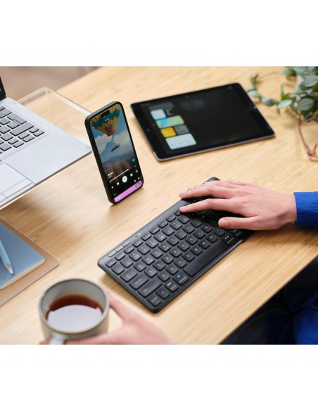 Compatível com uma vasta gama de sistemas operativos, incluindo Windows, iOS, iPadOS, macOS, Android e Chrome OS, o Trust Lyra garante a sua compatibilidade com diferentes dispositivos. O seu design compacto, com teclas de tijera de perfil baixo tipo portátil, proporciona uma experiência de escrita confortável, quer esteja a trabalhar na sua mesa, em casa ou em movimento. As patas de borracha de altura regulável em 3 passos permitem-lhe personalizar a sua posição de trabalho, garantindo o conforto necessário.