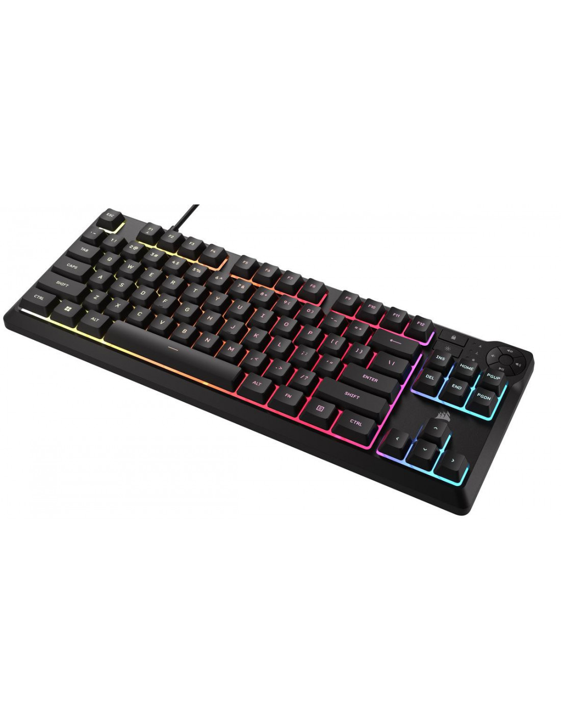 El CORSAIR K55 CORE TKL es un elegante teclado de membrana para juegos sin teclas numéricas y resistente a derrames, con un tamaño compacto perfecto para realizar grandes jugadas. Es ideal para escribir correos y ensayos gracias a sus teclas de membrana silenciosas y de gran respuesta. Con los botones multimedia dedicados, podrá controlar su música sin perder la concentración. Cree y personalice un espectáculo de luces utilizando la retroiluminación o una herramienta web. Resiste derrames de hasta 300 ml, por lo que un poco de agua no arruinará sus partidas de juego.
