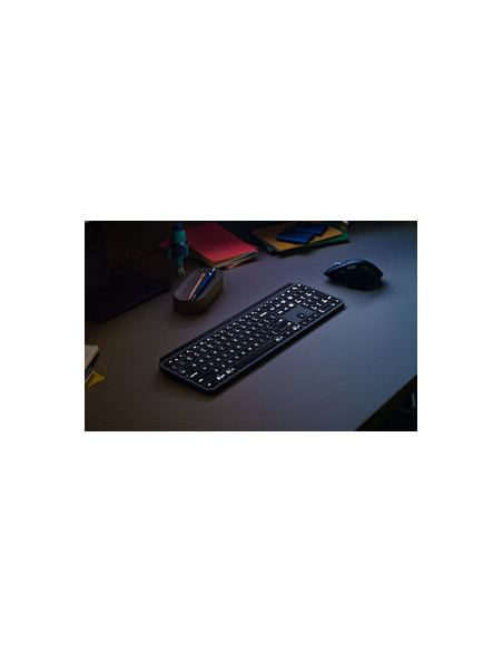 Logitech MX Keys. Formato del teclado: Estándar. Estilo de teclado: Derecho. Interfaz del dispositivo: RF Wireless + Bluetooth, Diseño de teclado: QWERTY. Descansa muñecas. Uso recomendado: Universal. Color del producto: Negro