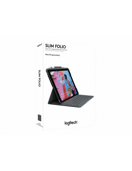 Logitech Slim Folio - teclado e pasta de folio - AZERTY - Francês - grafite - 920-009484