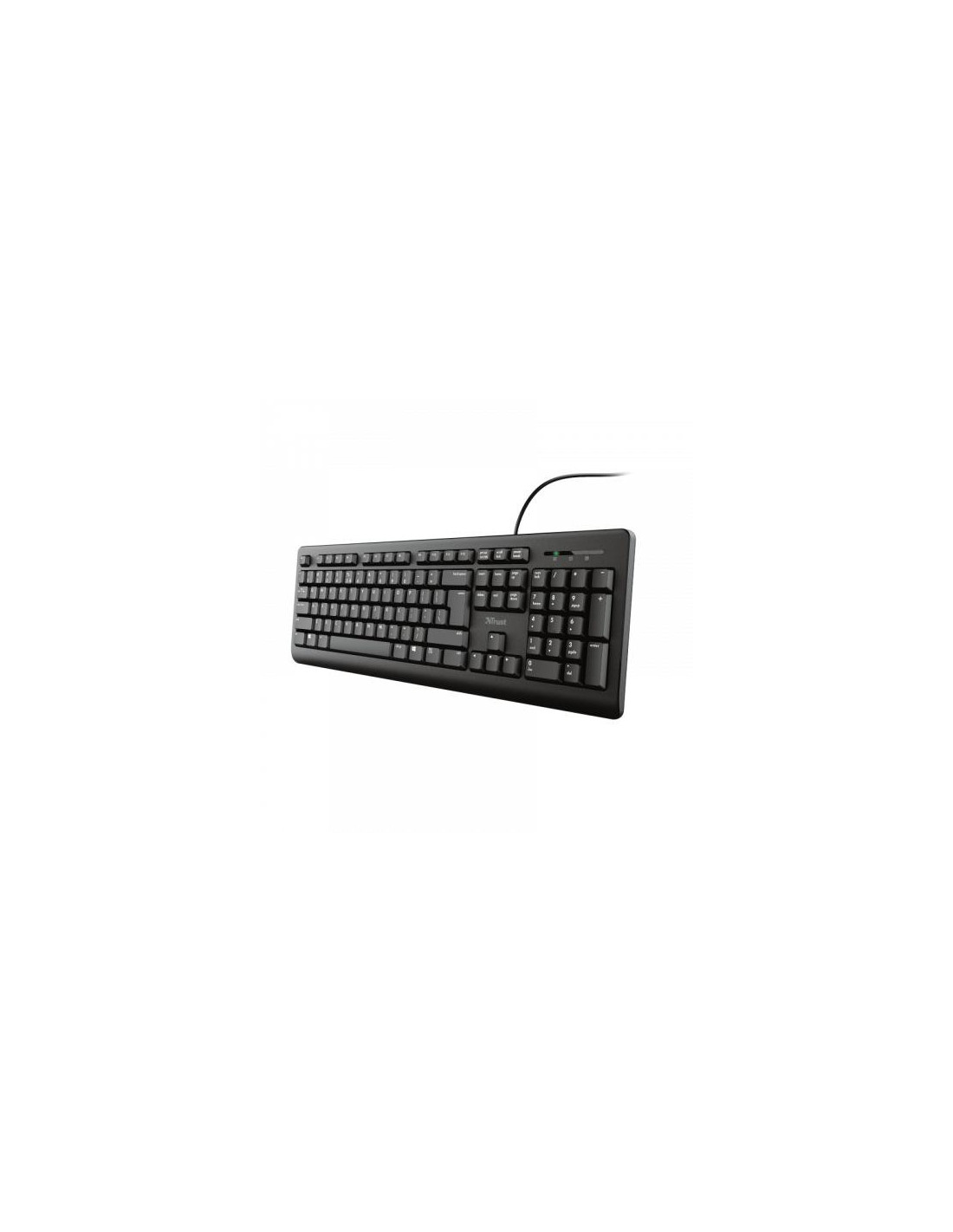 O teclado TRUST TK-150 é uma opção básica e funcional para o seu computador. Com design de tamanho completo QWERTY em português, este teclado USB oferece teclas silenciosas e resistentes a derrames de líquidos, garantindo uma utilização tranquila e segura. A sua altura é ajustável, proporcionando maior conforto durante longas sessões de utilização. A instalação é simples e rápida, bastando conectar o cabo USB de 1,8m. O teclado TK-150 é uma solução prática e fiável para o dia-a-dia.