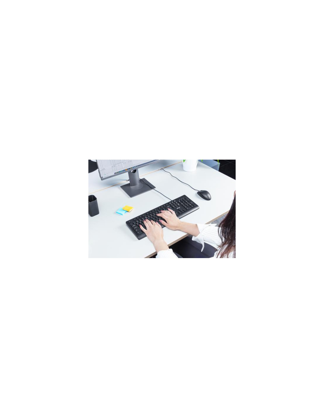 As teclas são de membrana, garantindo uma resposta suave e silenciosa, ideal para ambientes de trabalho partilhados ou para utilização em casa. Este teclado é compatível com uma vasta gama de sistemas operativos, incluindo Windows 7, 8, 10, e Mac OS X 10.15 Catalina e superior. A sua durabilidade é garantida por uma vida útil das teclas de 5 milhões de caracteres.