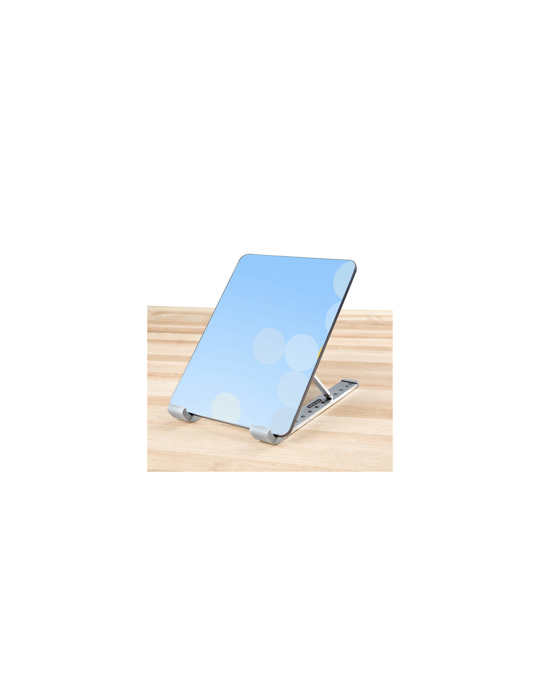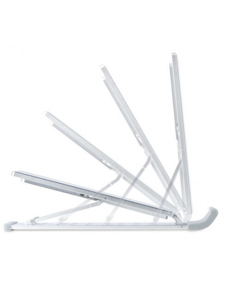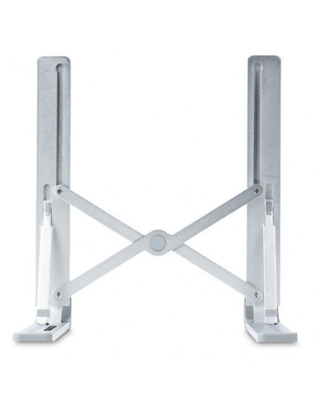 Com uma capacidade de carga de até 10 kg, o suporte é compatível com a maioria dos computadores portáteis e tablets. O seu design compacto e leve permite que seja facilmente transportado, ideal para quem trabalha em diferentes locais. A capacidade de ajuste de inclinação, variando de 15° a 84°, permite encontrar o ângulo perfeito para qualquer tarefa, desde a escrita até à visualização de apresentações. O acabamento em prata confere-lhe um aspeto moderno e discreto que se integra facilmente em qualquer ambiente de trabalho.