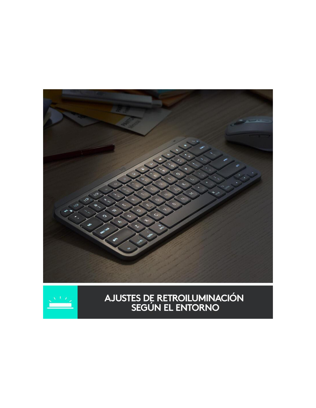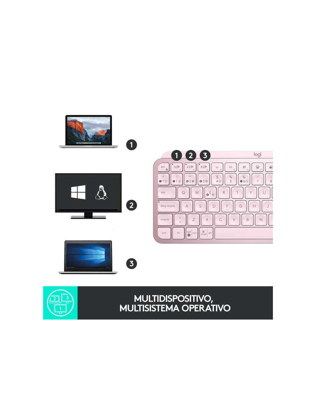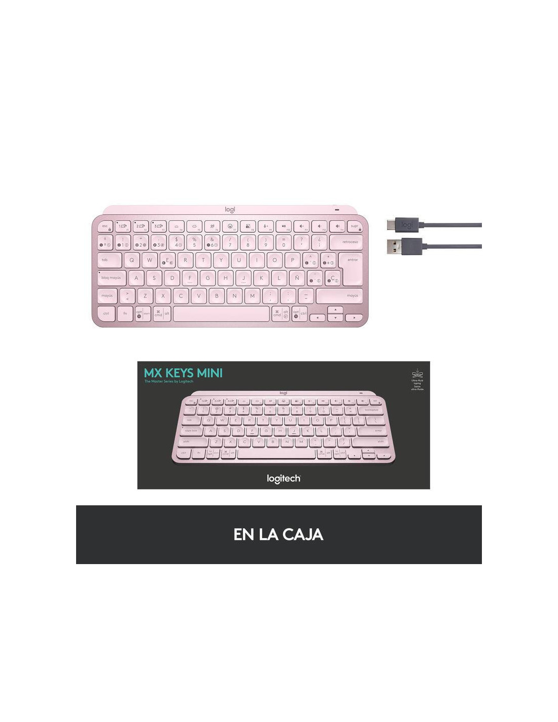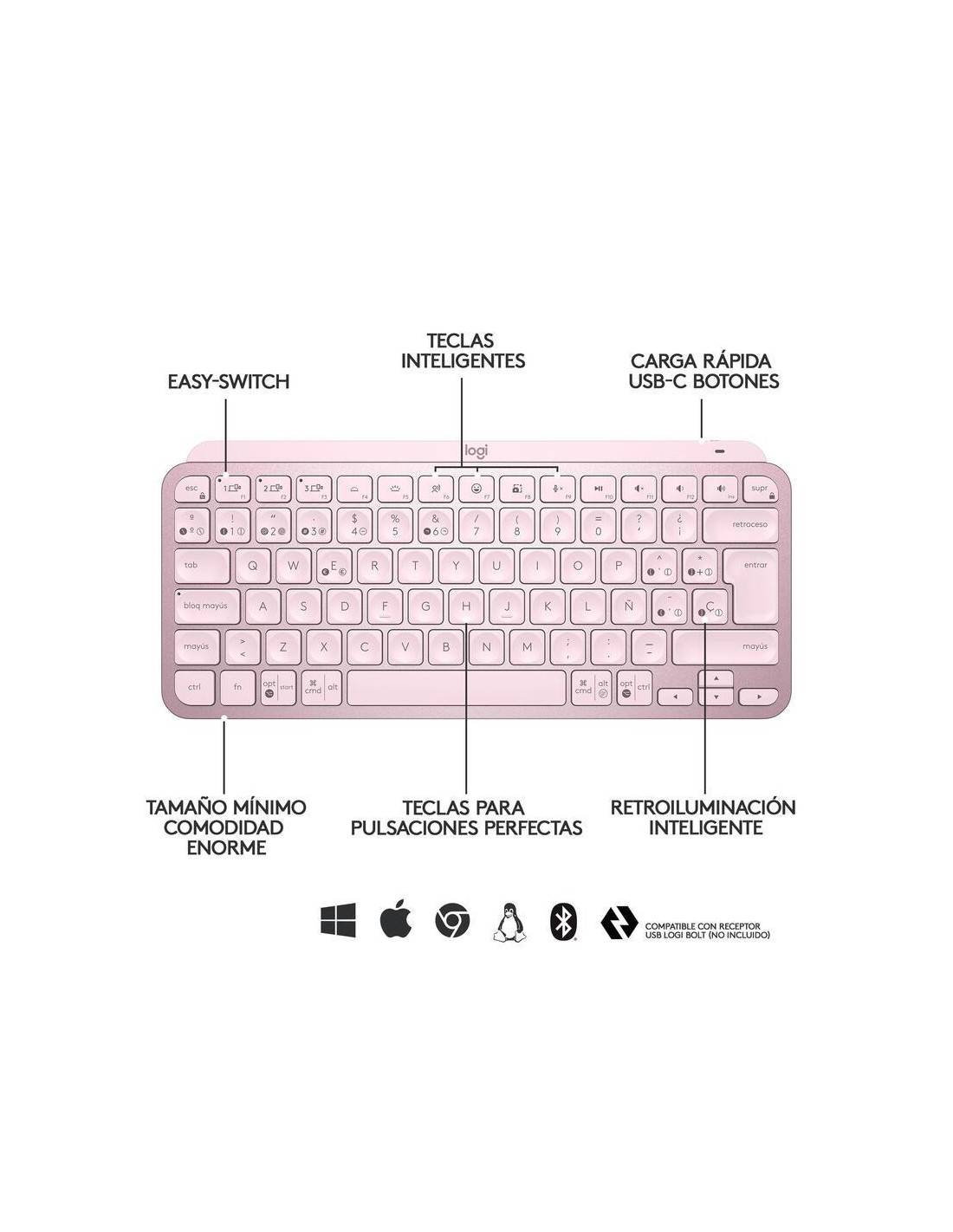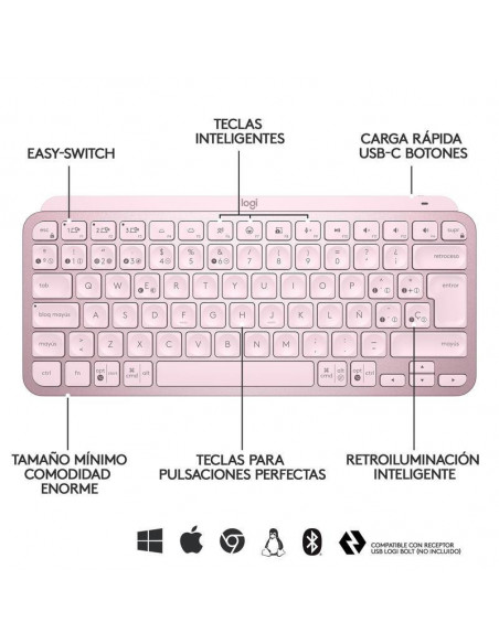 Logitech MX Keys Mini - Teclado - retroiluminação - Bluetooth - QWERTY - Espanhol - rosa