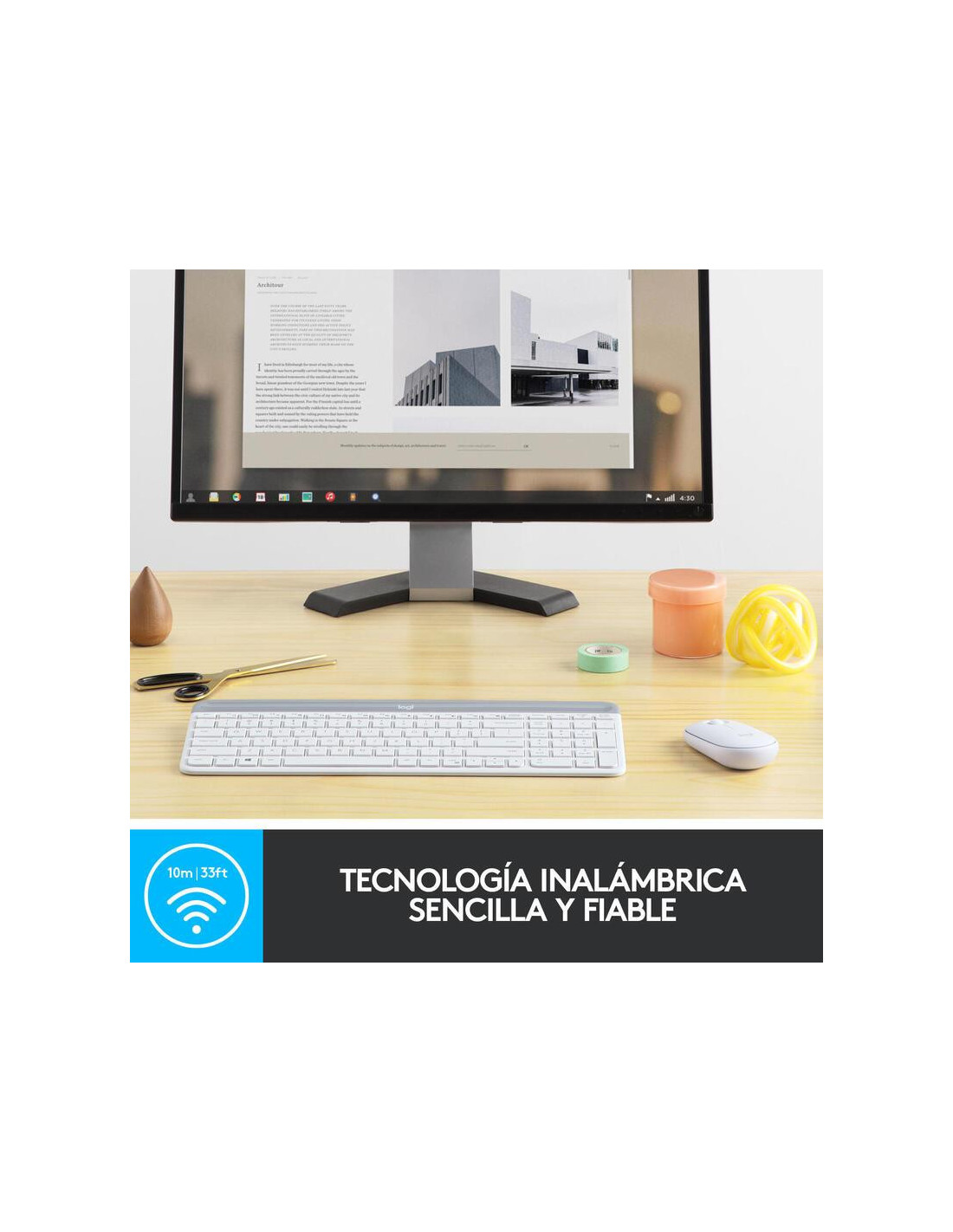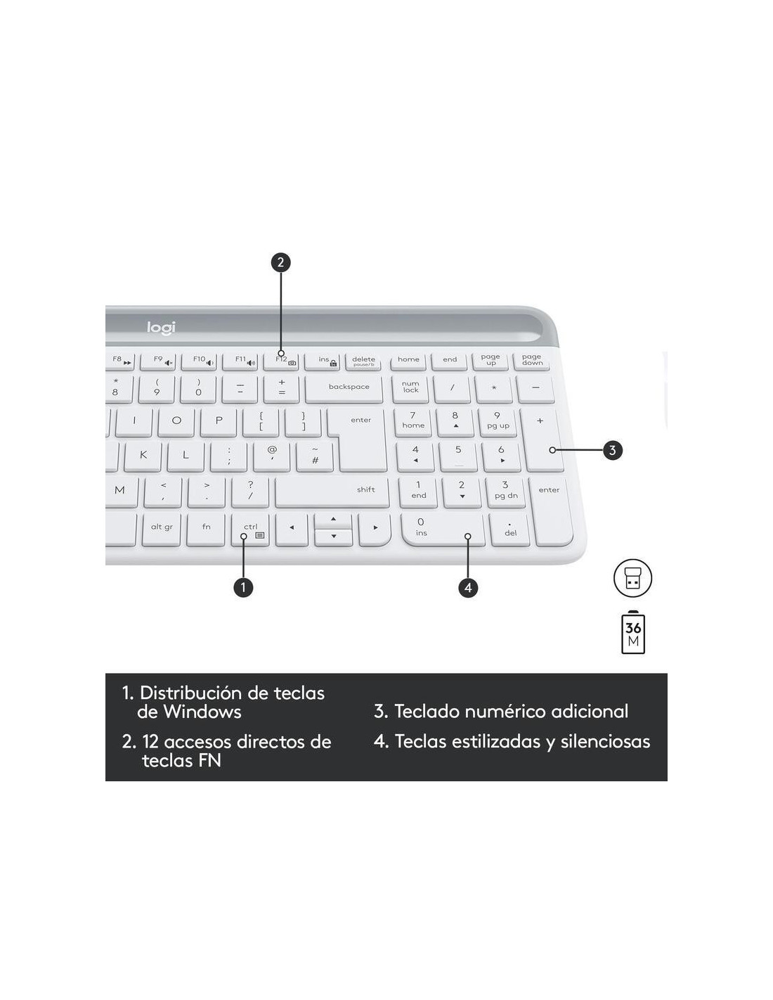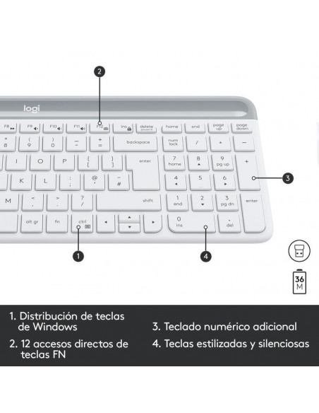 Logitech Slim Wireless Combo MK470 - Conjunto de teclado e rato - sem fios - 2.4 GHz - Espanhol - branco sujo