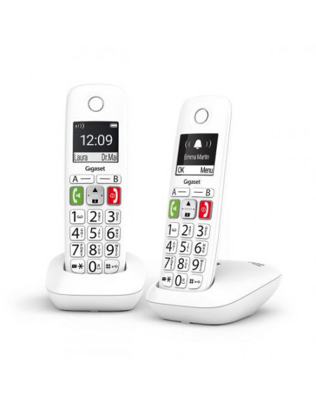 O Gigaset E290 Duo é um telefone fixo sem fios que combina praticidade e funcionalidades úteis para o dia a dia. A tecnologia DECT/Analógico garante uma ligação estável e confiável, enquanto o design ergonómico e intuitivo facilita a utilização. O ecrã de 5,08 cm (2”) com alta visibilidade, juntamente com os botões grandes, tornam-no especialmente adequado para pessoas com mobilidade reduzida ou deficiência visual.