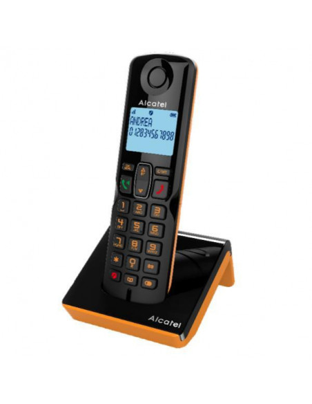 O Telefone Fixo Sem Fio Alcatel S280 EWE, numa elegante combinação de preto e laranja, oferece comunicação clara e confiável com tecnologia DECT/GAP.  Com alcance até 300m (exterior), inclui kit mãos-livres, visor alfanumérico e bateria com longa duração. Ideal para casas ou escritórios. Inclui 1 portátil, mas permite conectar até 4.