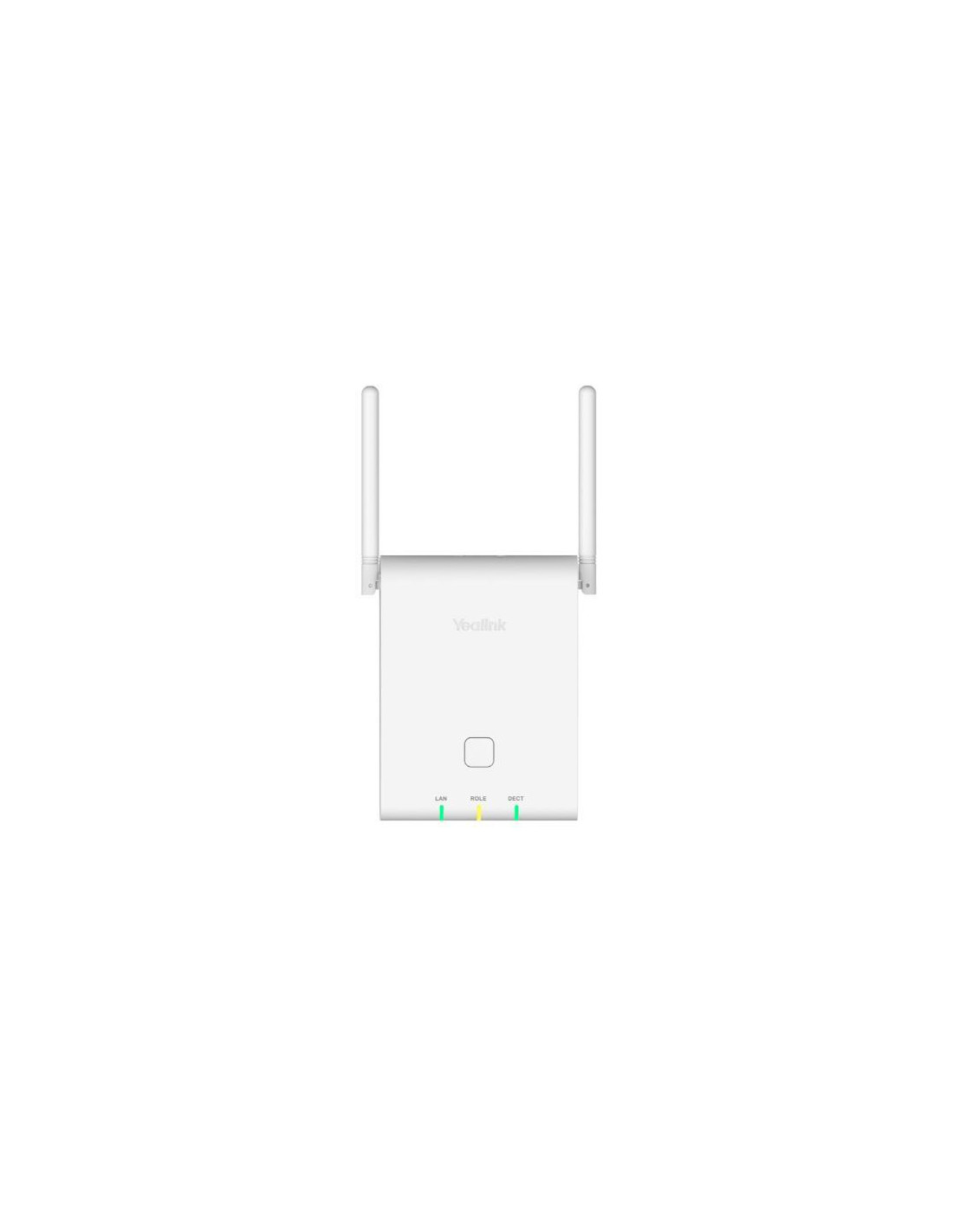 A base DECT Yealink W90B é alimentada via PoE (Power over Ethernet), eliminando a necessidade de uma fonte de alimentação separada e simplificando a instalação e manutenção. Esta característica contribui para uma instalação mais limpa e eficiente, reduzindo a quantidade de cabos e simplificando a gestão da infraestrutura. A ausência de bateria interna contribui para a simplicidade do design e para a fiabilidade do sistema. Com um design compacto e de cor branca, a W90B integra-se facilmente em qualquer ambiente de escritório moderno, complementando a estética profissional sem chamar atenção desnecessária. A ausência de um visor e de um ecrã táctil simplifica o design, mantendo o foco na sua funcionalidade principal: servir como central para telefones DECT sem fios, assegurando a qualidade das comunicações.