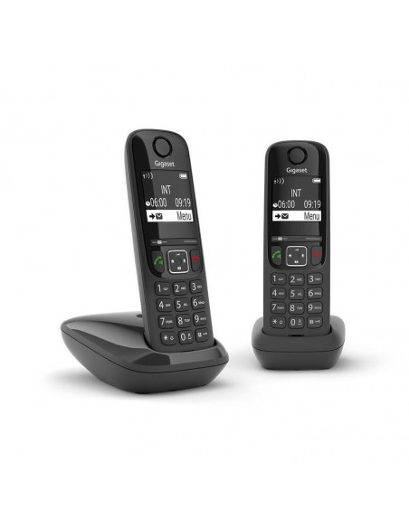 O Gigaset AS690 Duo é um telefone fixo DECT/analógico com duas unidades, design elegante e funcionalidades avançadas. Oferece um excelente som, com opção de modo mãos-livres ajustável, e um grande ecrã gráfico iluminado para maior conforto visual. Possui identificador de chamadas, lista negra para bloquear números indesejados e agenda com capacidade para 100 contactos.