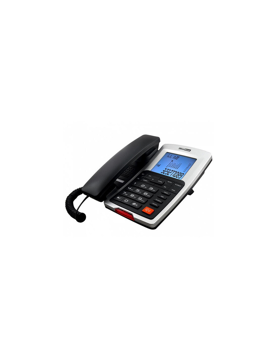 Telefone analógico Maxcom KXT709 na cor preta. Oferece funcionalidades como altifalante mãos-livres e identificação de chamadas (nome e número).