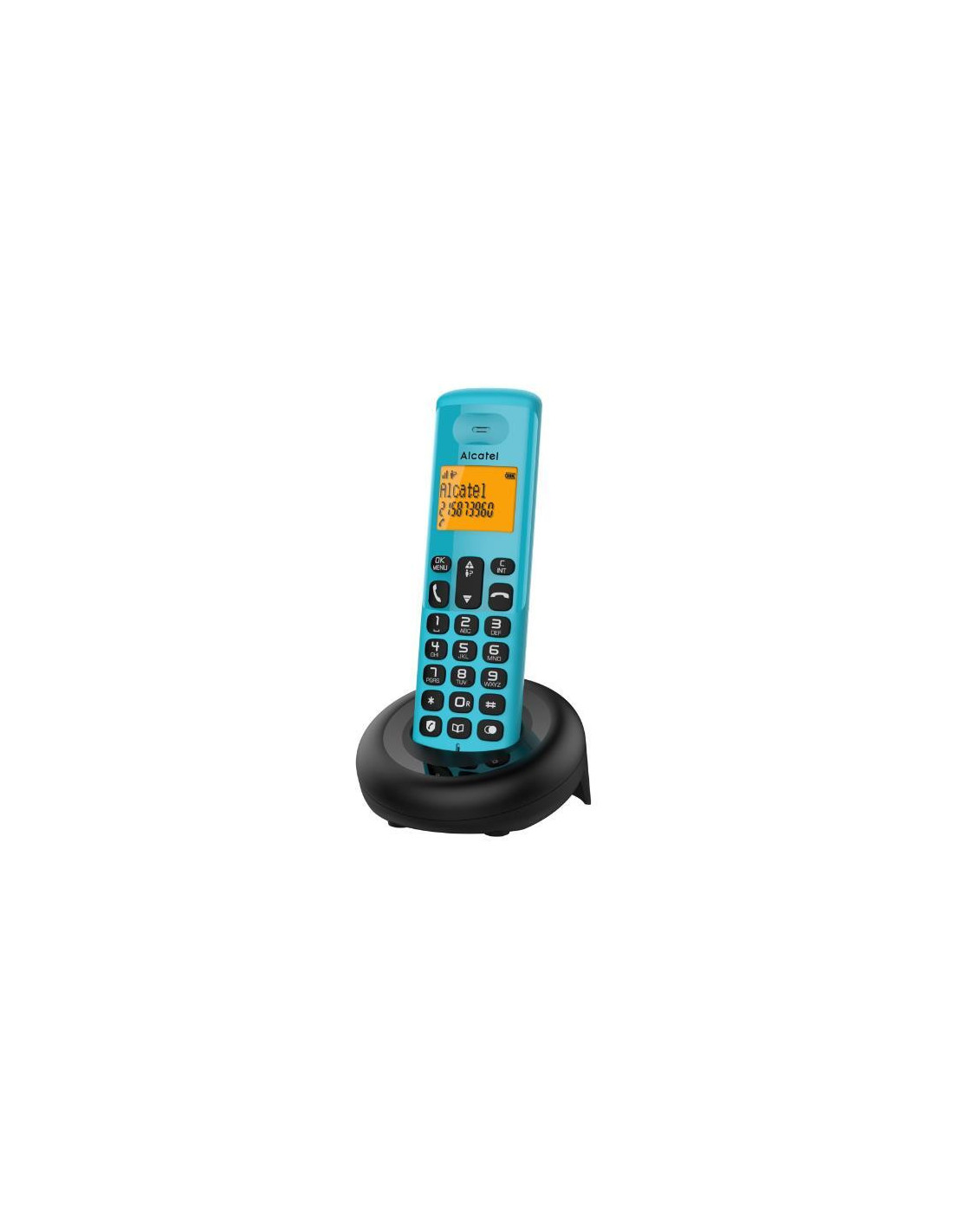 Telefone fixo sem fios Alcatel E160 EWE Azul, simples e económico. Compatível com DECT/GAP, expansível até 4 portáteis. Autonomia de 10h em conversação e 100h em standby. Visor LCD com informações essenciais.
