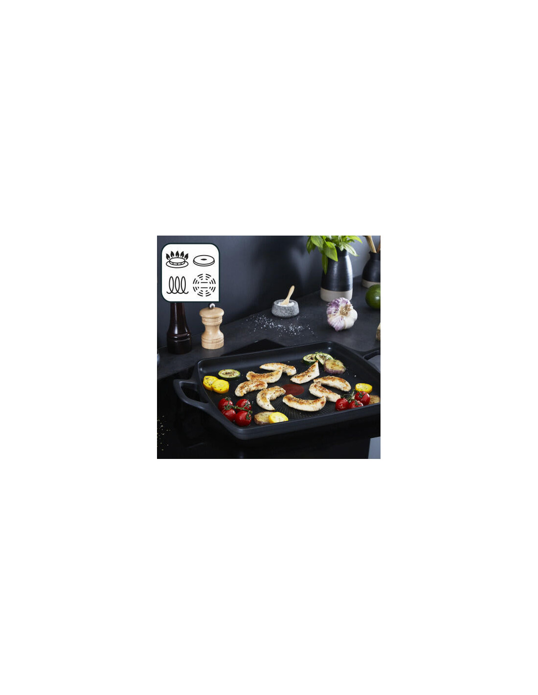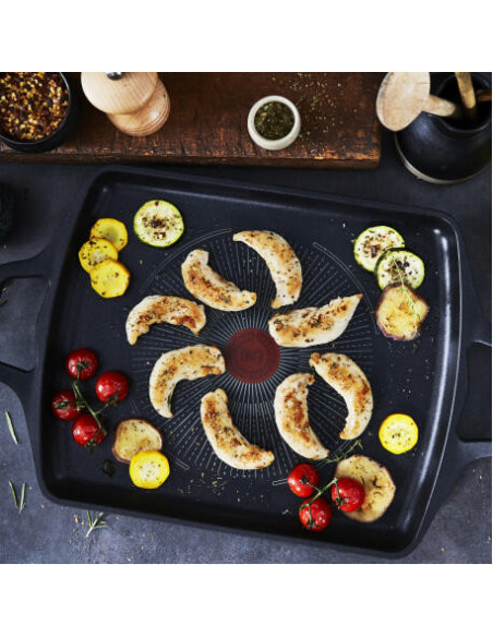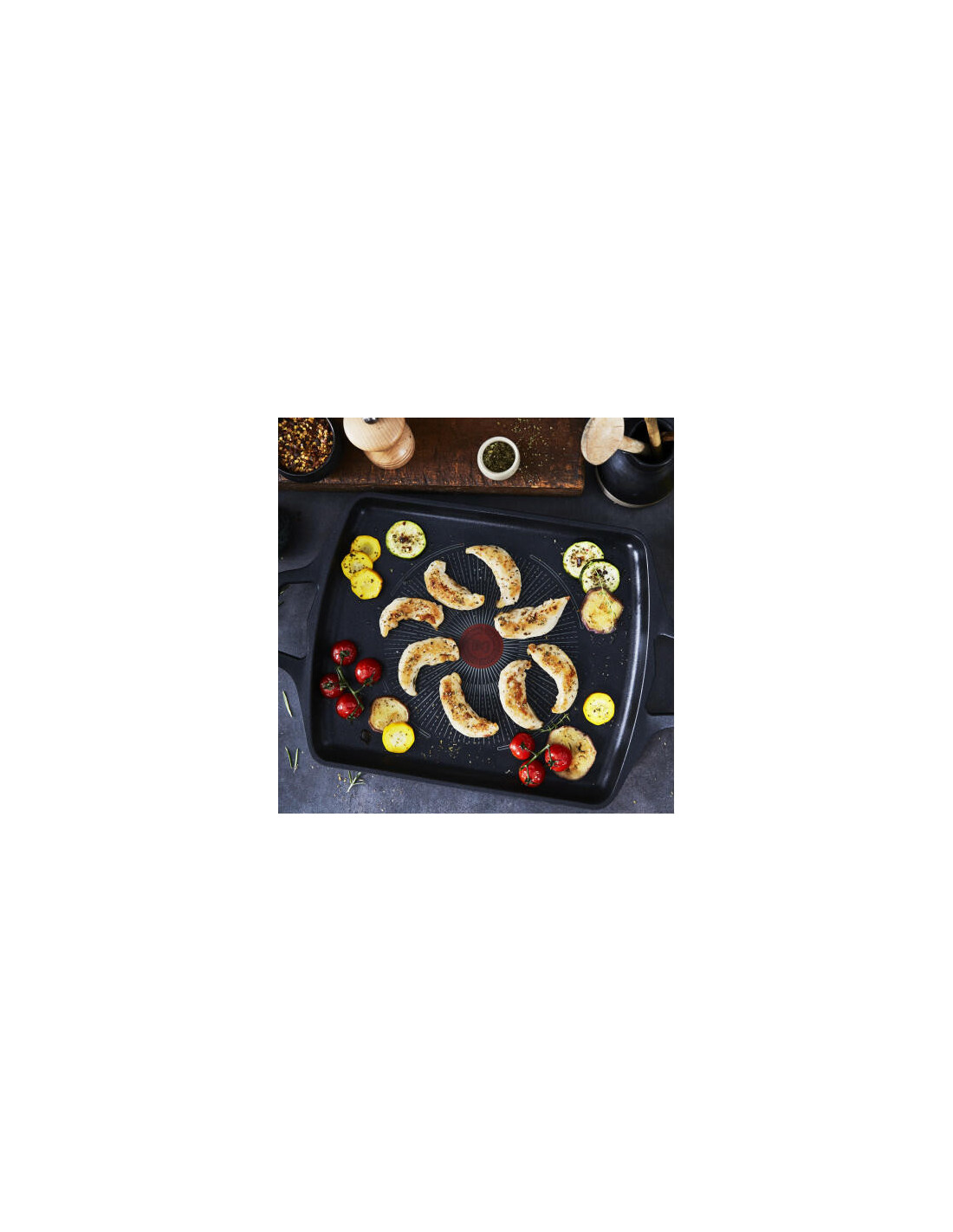 Tefal E24998. Forma: Retangular, Cor do produto: Preto, Material: Alumínio fundido. Largura: 272 mm, Profundidade: 428 mm, Altura: 49 mm. Comprimento da embalagem: 275 mm, Profundidade da embalagem: 431 mm, Altura da embalagem: 52 mm. Produtos por camada de palete: 20 unidade(s), Quantidade por conjunto: 1 unidade(s), Quantidade por recipiente intermodal (20 pés): 4560 unidade(s)