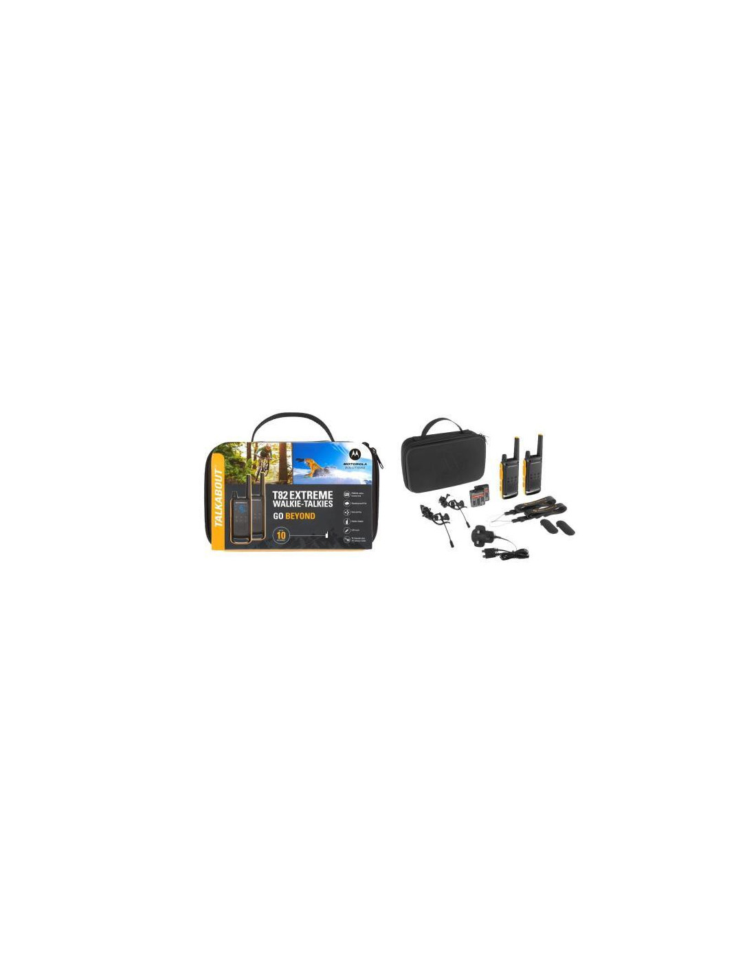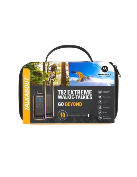 O walkie-talkie Motorola T82EX, com o código MPN 59T82EXPACK, é uma solução de comunicação PMR (Private Mobile Radio) robusta e versátil, perfeita para uso pessoal e profissional. Com 16 canais e 121 subcanais CTCSS, oferece uma ampla gama de frequências para uma comunicação clara e eficiente, minimizando interferências e garantindo privacidade. A sua capacidade de comunicação em áreas extensas é garantida por um alcance máximo de 10.000 metros.