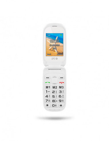 O telemóvel SPC Harmony Branco é um telemóvel básico com design concha e funcionalidades essenciais. Apresenta um ecrã externo de 6,1 cm (2,4”) com resolução de 240 x 320 pixels. Ideal para quem procura um telemóvel simples e prático para chamadas e mensagens. Inclui conectividade Bluetooth e rádio FM. A sua bateria de iões de lítio tem capacidade de 800 mAh. Com duas entradas para cartão SIM (Dual SIM). Peso de 89,5g.