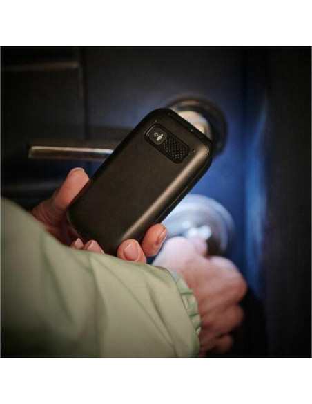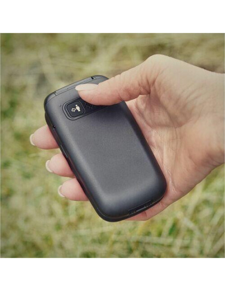 **Outras Funcionalidades:** O telemóvel inclui uma prática câmara para capturar imagens, uma linterna LED integrada para uma iluminação conveniente e uma bateria de longa duração (até 7h em conversação e 12 dias em modo de espera). O seu design robusto torna-o resistente a pequenos impactos acidentais. Inclui ainda ranura para cartão MicroSD (até 32GB) para expandir a memória.
