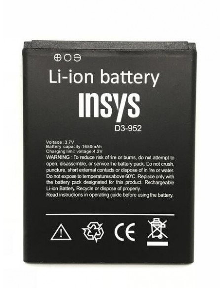 Bateria de substituição para o smartphone INSYS D3-952. Esta bateria Li-ion de 1500 mAh oferece uma fonte de energia fiável e de longa duração, ideal para uso diário.