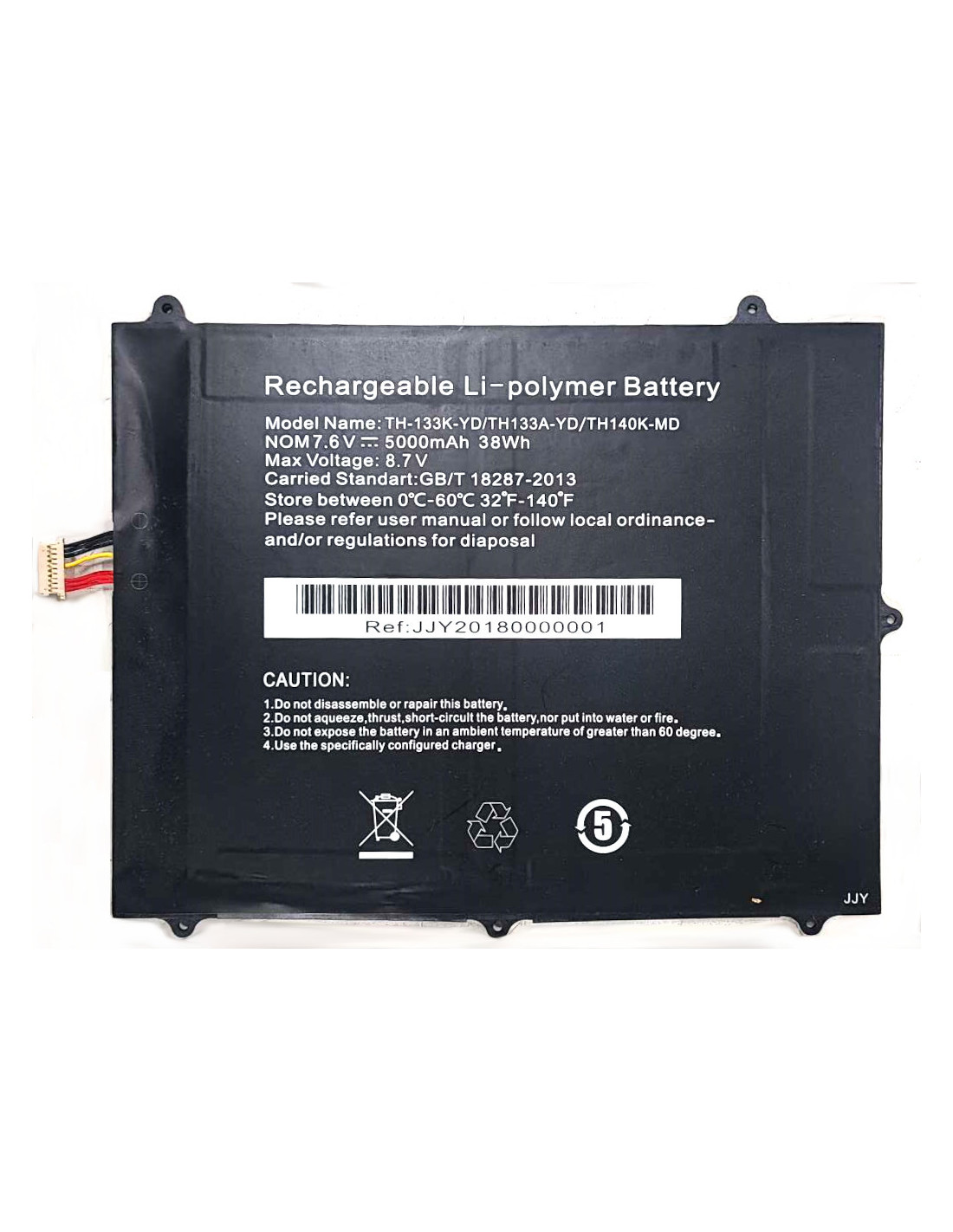 Bateria de substituição para portáteis INSYS KP8-133KK e KUBO KP8-133A. Esta bateria Li-polymer de alta capacidade oferece 7.6V e 5000mAh de energia, garantindo um desempenho fiável. Requer instalação por profissional especializado.