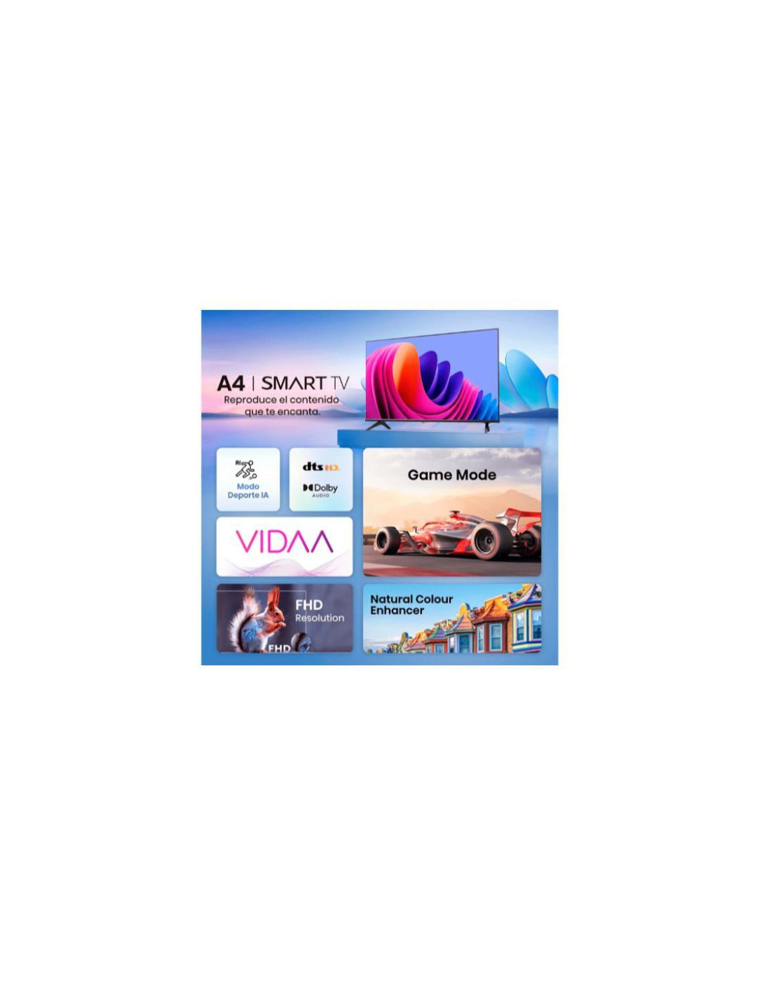 A Hisense 32A4N é uma Smart TV de 32 polegadas que combina tecnologia moderna com um design elegante e compacto, perfeita para quem procura um televisor com boa qualidade de imagem e funcionalidades inteligentes, sem ocupar muito espaço. O ecrã de 32 polegadas com resolução HD (1366x768) proporciona imagens nítidas e vibrantes, ideais para o entretenimento doméstico. A tecnologia Smart TV permite acesso a uma vasta gama de aplicações online, abrindo um mundo de conteúdo de streaming, jogos e muito mais.