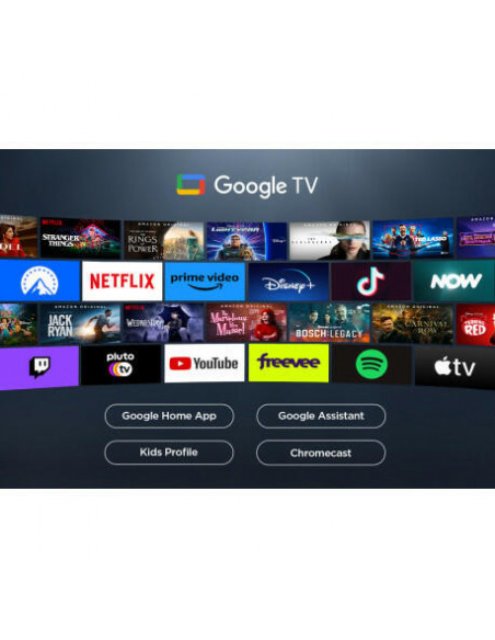**Smart TV com Google TV:** Navegue pelo vasto catálogo de aplicações, filmes, séries e muito mais com a interface intuitiva do Google TV. Este televisor oferece acesso a inúmeras aplicações, incluindo Netflix, YouTube, Amazon Prime Video e muitas outras. O Google TV também oferece recomendações personalizadas, facilitando a descoberta de novos conteúdos.