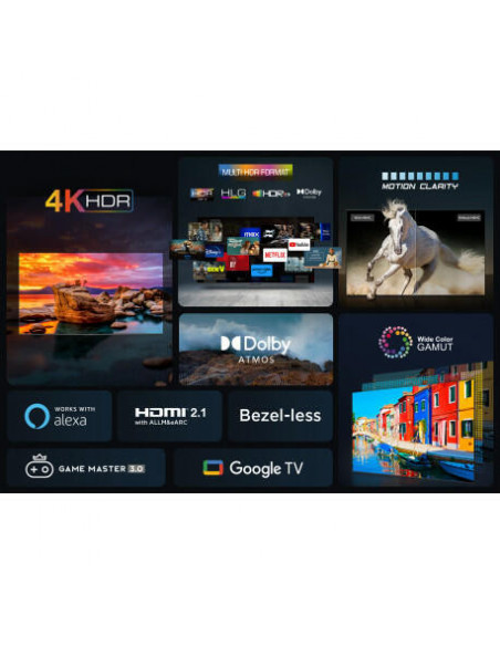 A tecnologia HDR (High Dynamic Range) proporciona um nível de brilho, contraste e detalhe sem igual, permitindo desfrutar de cores ricas e vibrantes. O processador AiPQ Engine da TCL otimiza a imagem em tempo real, garantindo imagens nítidas e fluídas, mesmo em conteúdos de baixa resolução.