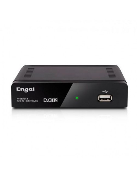 O receptor de televisão digital terrestre Engel RT5130T2 é um dispositivo HD com gravação PVR integrada. Permite a receção de canais DVB-T2 e oferece compatibilidade com vários formatos de vídeo e áudio. Inclui uma porta HDMI, SCART e USB.