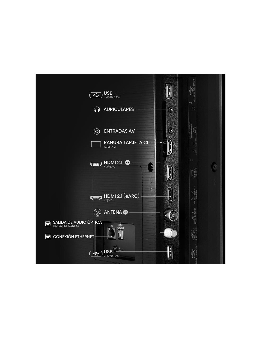 - Sintonizador Digital: DVB-C, DVB-S, DVB-S2, DVB-T, DVB-T2