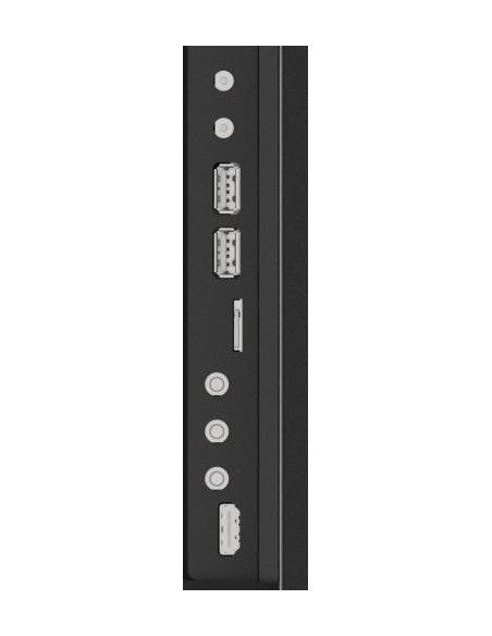 A sua versatilidade é assegurada pela integração do sistema operativo Android 11, que permite executar aplicações e conteúdos multimédia diretamente no ecrã. Além disso, dispõe de uma variedade de portas de entrada e saída, incluindo 3 entradas HDMI (versão 2.0), DisplayPort 1.2, uma porta Ethernet RJ45 para ligação à rede, e ainda altifalantes estéreo integrados com 20W de potência RMS para uma experiência áudio completa.