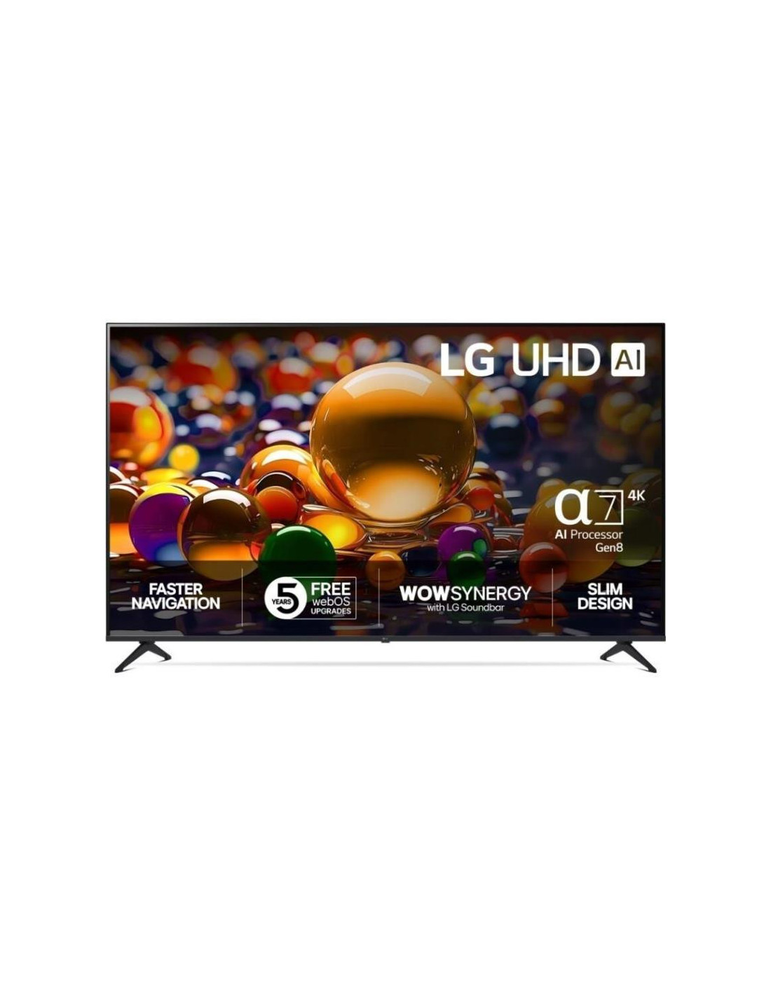 Cores e detalhes deslumbrantes com HDR10 Pro 4KQualidade de imagem 4K, imagem melhorada e som surround do processador alpha 7 AI 4K Gen8Novo botão de IA, controlos de voz, funções de arrastar e largar no AI Magic RemoteDesfrute de uma resolução, um brilho e uma nitidez melhorados graças ao 4K Super UpscalingAlta resolução num enorme ecrã Ultra Big TV