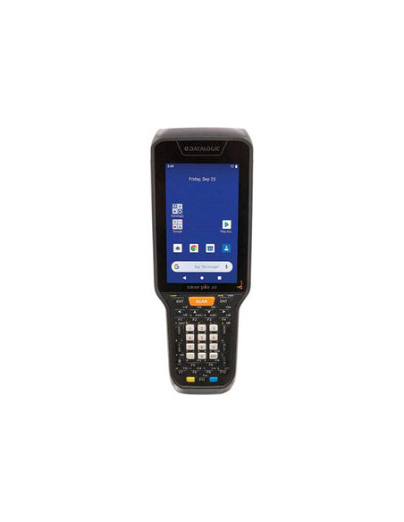Terminal de mão robusta Datalogic Skorpio X5 com sistema operativo Android 10, ecrã de 4,3 polegadas, 4GB de RAM e 64GB de memória flash. Inclui leitor de código de barras 1D e 2D, Wi-Fi, Bluetooth e teclado de 38 teclas. Ideal para aplicações POS.