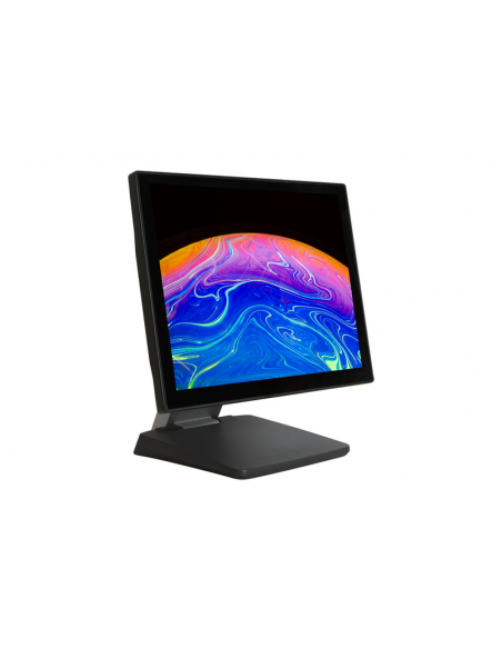O ecrã de 15 polegadas, com resolução de 1024x768, e a tecnologia touch True-Flat PCAP proporciona uma experiência de utilização intuitiva e responsiva, facilitando a interação com o sistema. O design compacto e elegante do PP-9745 permite uma fácil integração em diferentes ambientes, otimizando o espaço.