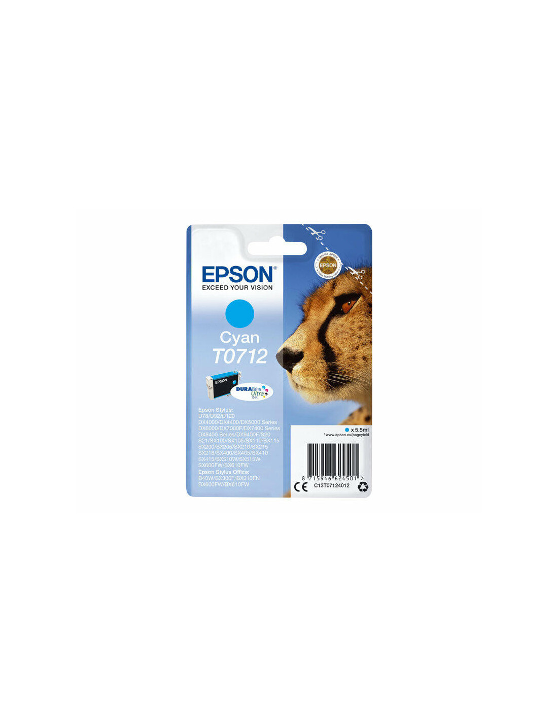 Tinteiro EPSON T0712 Ciano - B40/110, BX3xx/600, D120, DX74xx/84xx/9400, SX2xx/4xx5/5xx/6xx